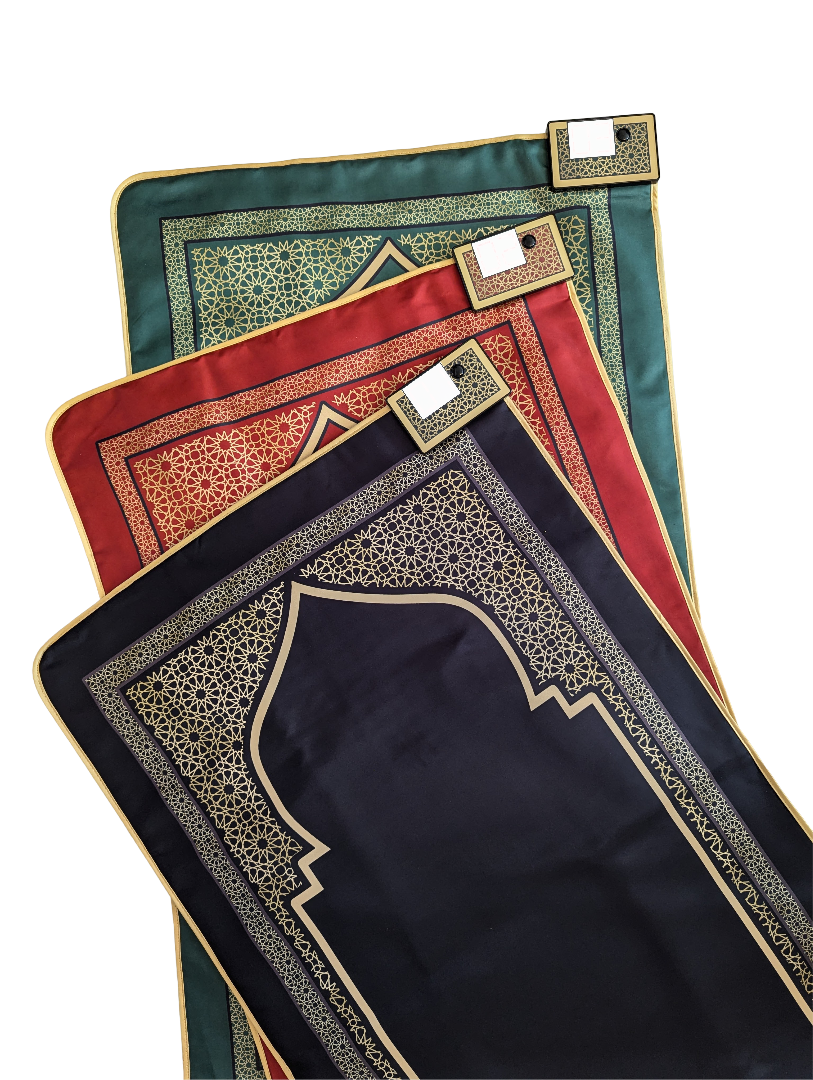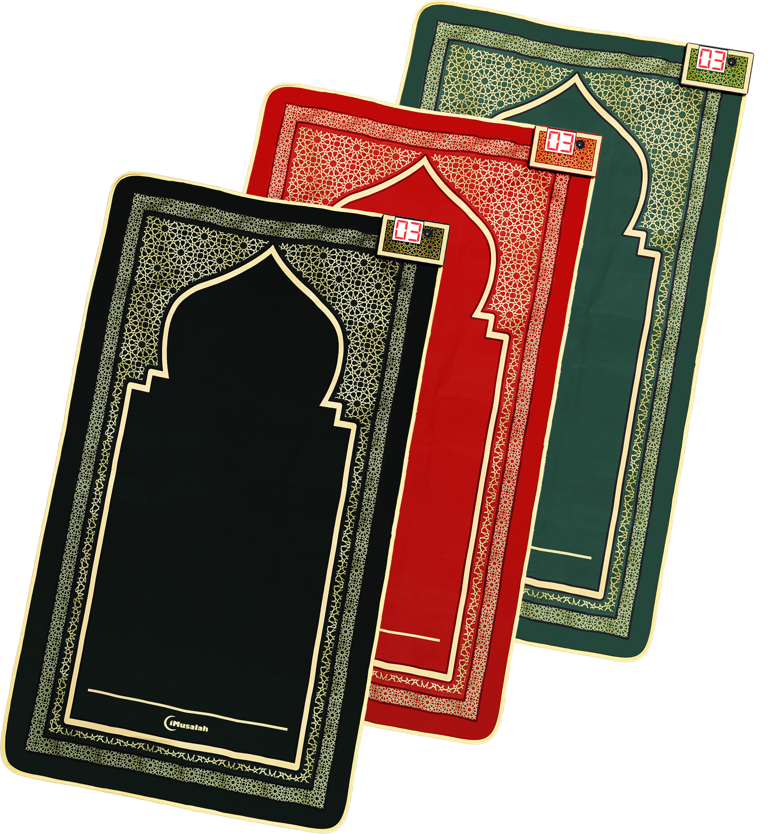 Discover the innovative iMusalah prayer mat with built-in rakat counter. Keep track of your prayers with the intuitive counter and elegant design (patent pending).